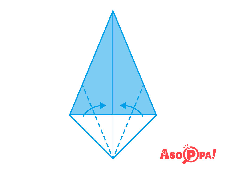 中央に向かって谷折り -