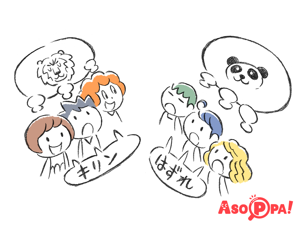 お互いに2回外れたら動物を考え直すところからやり直しです。当てるのが難しい場合は、予め何種類か動物を決めておき、その中から好きな動物を選ぶでも良いです