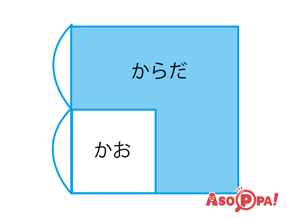 からだとかおのバランス目安。顔を大き目にしたい場合は同じ大きさの折り紙を使ってもOK ! -