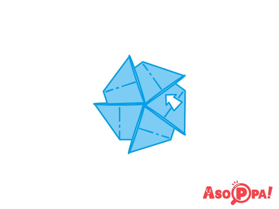 おりすじをつけ、上に開くように花弁おりをする※5箇所全部 -