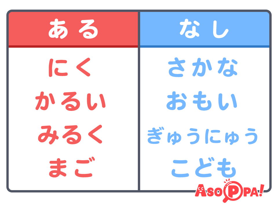 「ある」にはあって 「なし」にはない きょうつうてんを みつけてみよう!
